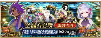| 国服近未来卡池 | 开始时间 ~ 结束时间 | 推荐召唤从者 (期间限定从者带有红色边框;剧情限定从者带有蓝色边框) |